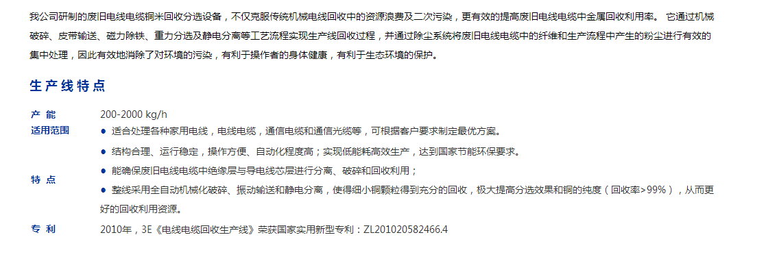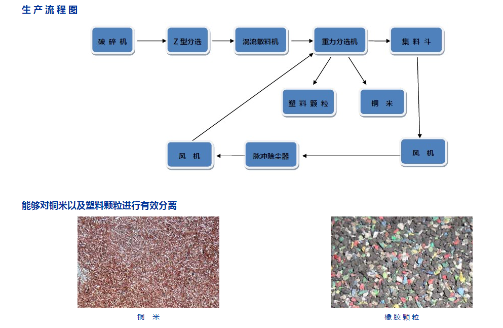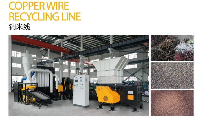 该铜米机是我公司自主研发的回收线之一,通常用来生产铜和回收塑料颗粒。具有结构合理,运行稳定等特点。它只需要喂料一次,配备分离器,该回收线具有大容量,我们可以根据客户的要求进行相应的改装。